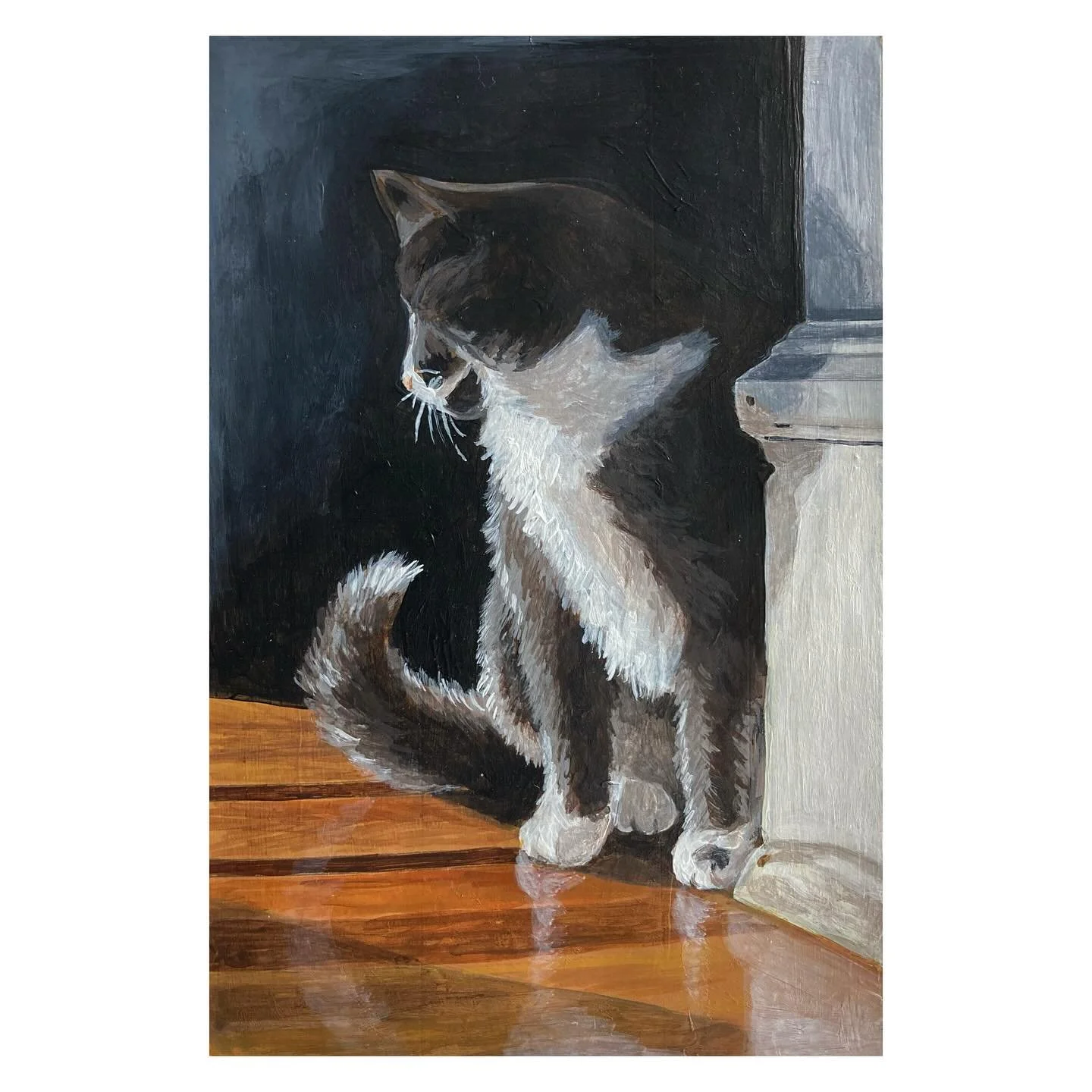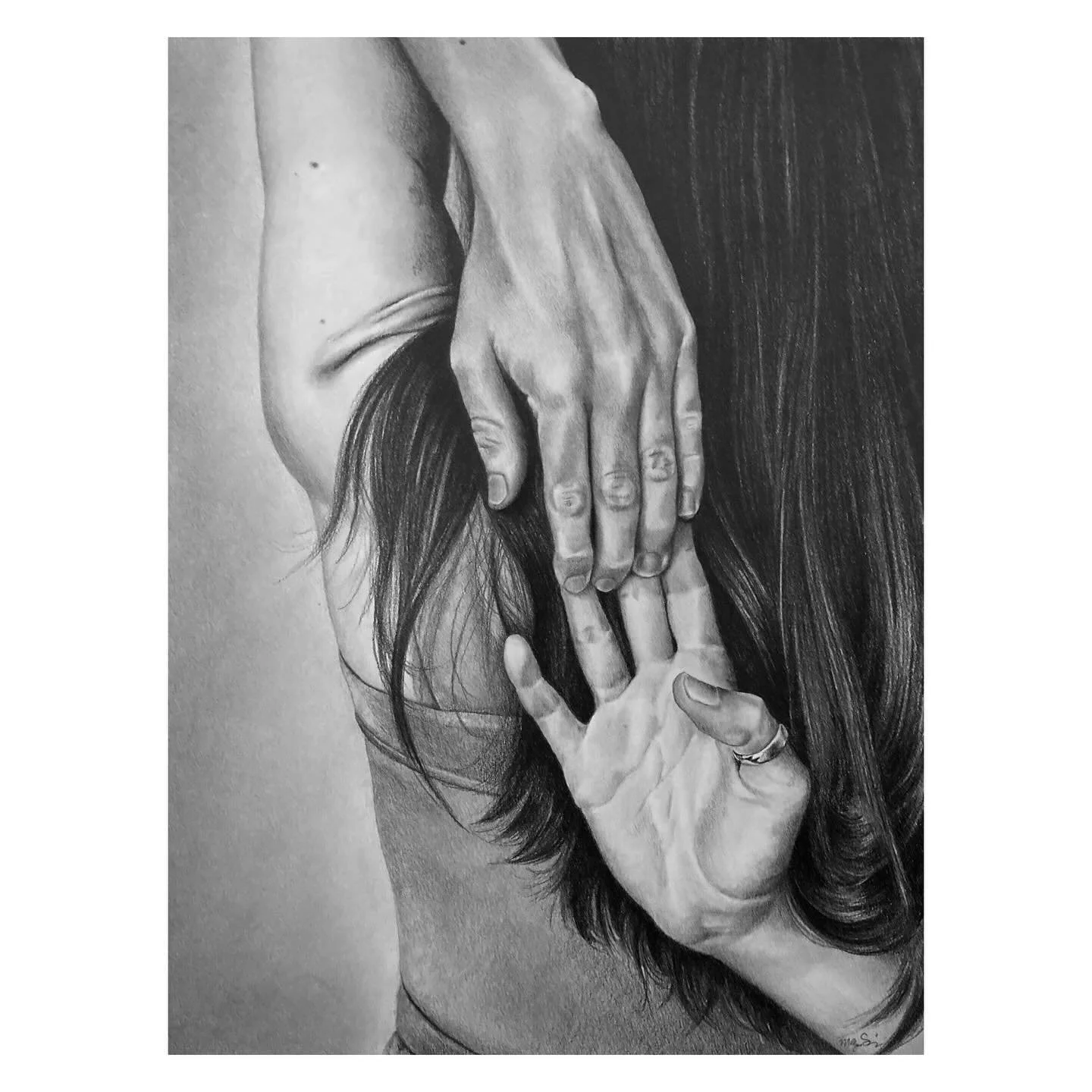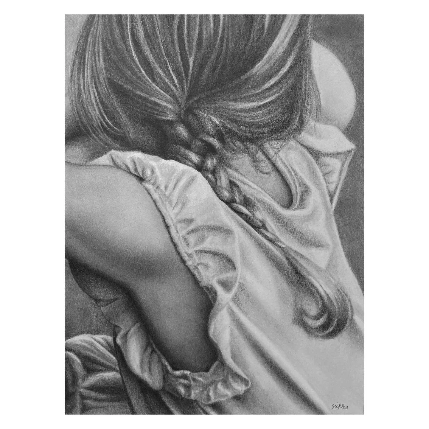 Her work is primarily autobiographical documentation and an opportunity to capture and synthesize fleeting thoughts, memories, feelings, and experiences. She is interested in the concept of anticipatory nostalgia both within and beyond the boundaries of her home life. While she enjoys experimenting with a variety of mediums, her current favorites are graphite & acrylic.